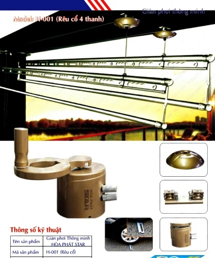 giàn phơi H-001 (màu bạc 4 thanh) được sản xuất nguyên bộ từ nhà máy hòa phát. Sản phẩm mới được ra mắt vào đầu năm 2019 và đang được rất nhiều gia đình lựa chọn.
