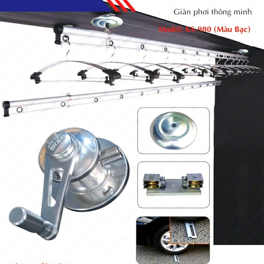 Giàn phơi Hoà Phát KS-980 mới với sức chịu tải tốt hơn lên đến 50kg phù hợp với gian đình từ 5 đến 6 thành viên
