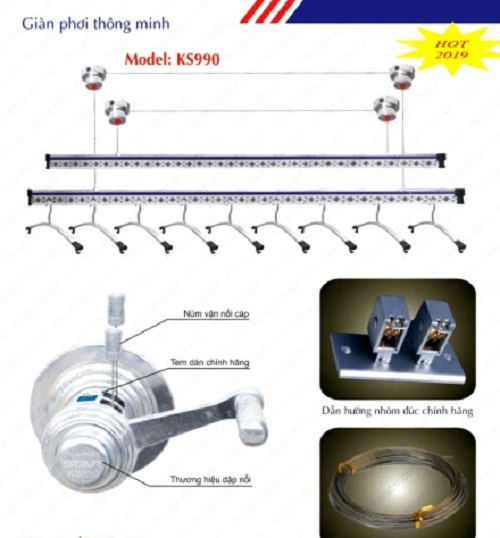 Giàn phơi Hoà Phát KS-990 Model 2018 mới với sức chịu tải tốt hơn lên đến 50kg phù hợp với gian đình từ 4 đến 6 thành viên
